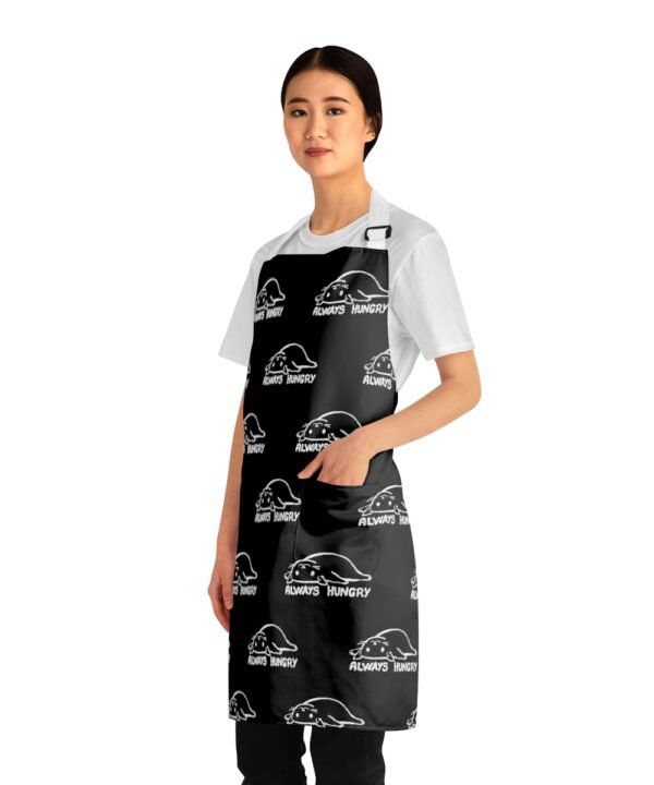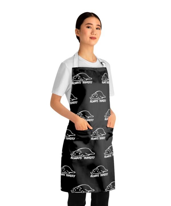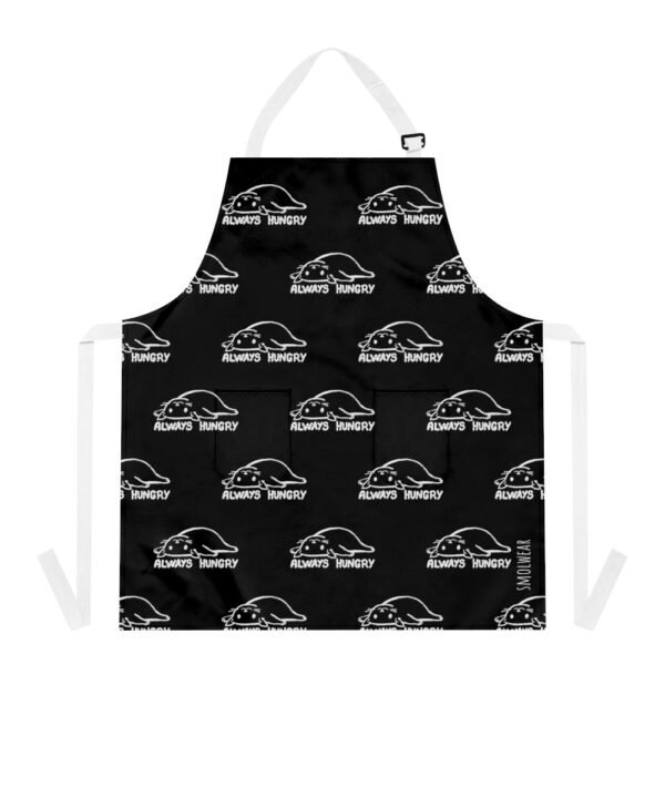 Add some personality to your kitchen with a custom apron with black color. Featuring a fun and unique hungry cat design, this kitchen accessory is sure to bring a smile to your face every time you cook. And with its personalized design, you’ll be able to make this apron truly one-of-a-kind. Plus, with two convenient pockets, you’ll have plenty of space to store all your cooking essentials. So why wait? Get your hands on a custom kitchen apron from Smol Wear and start cooking in style!
