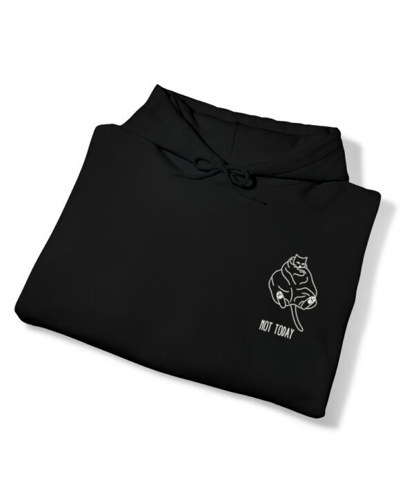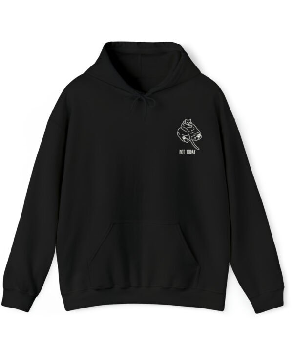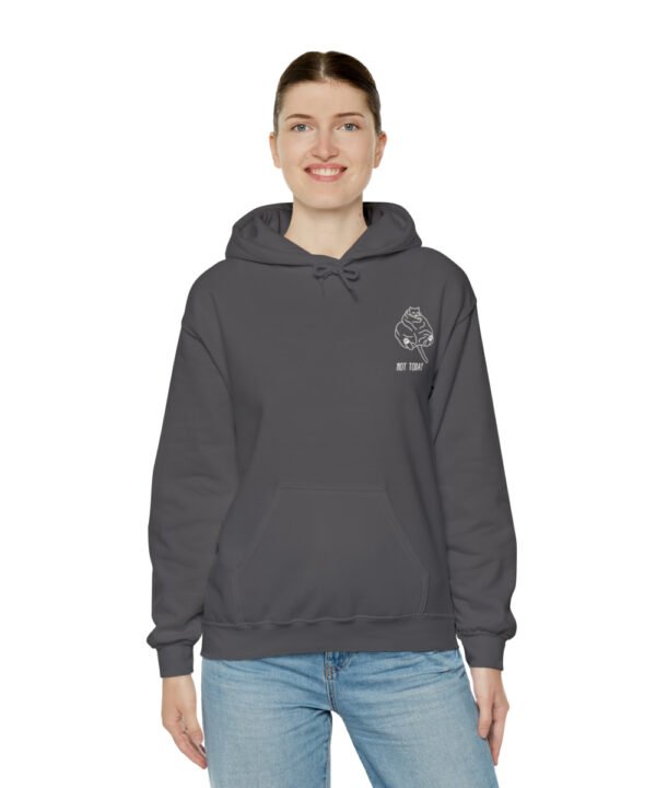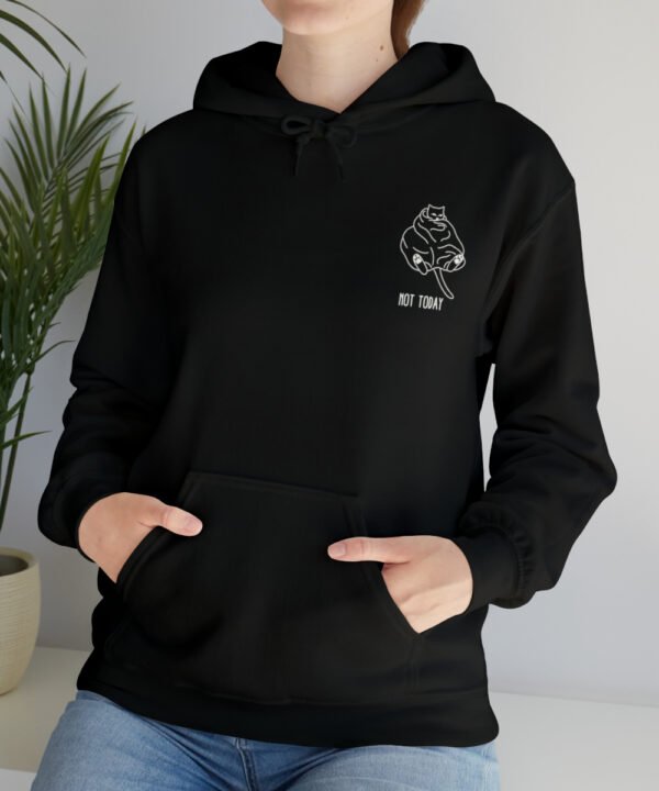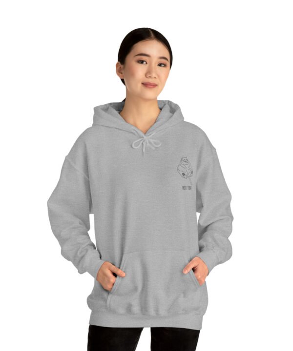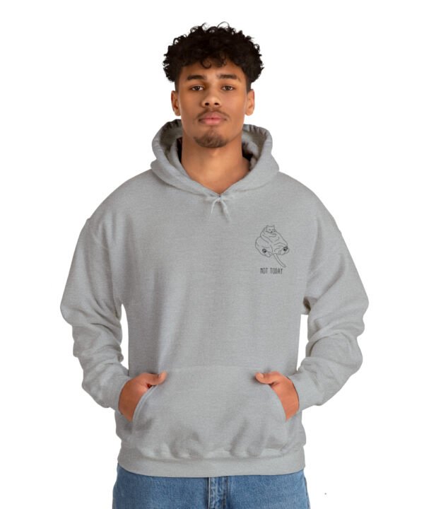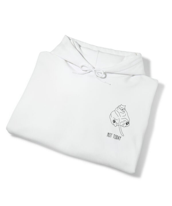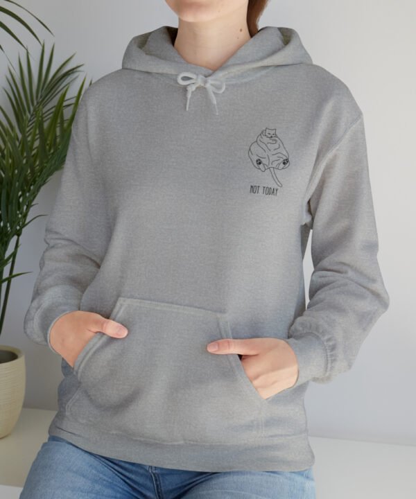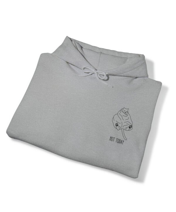 Embrace your inner feline attitude with the “Sassy Cat” Not Today Hoodie. This Unisex Heavy Blend™ Hooded Sweatshirt displays a cat licking its rear end, along with the text “Not Today”.
