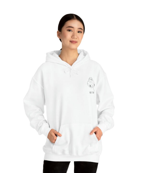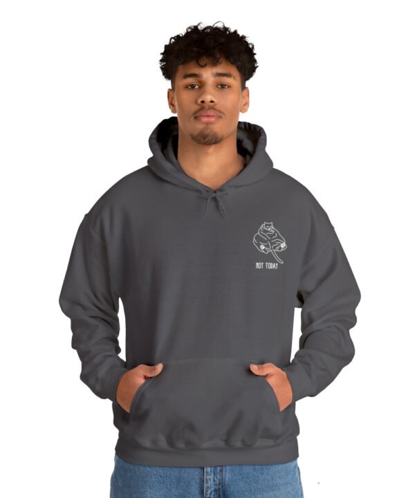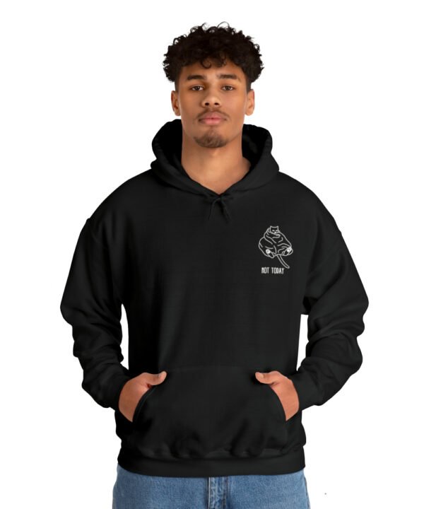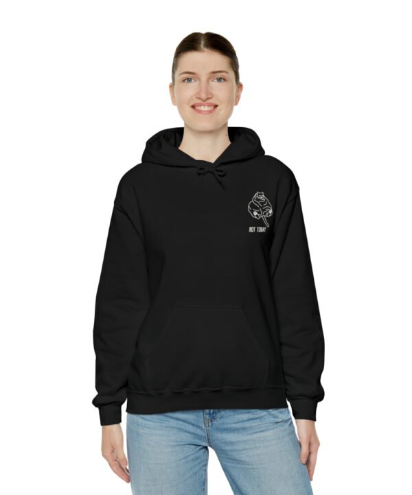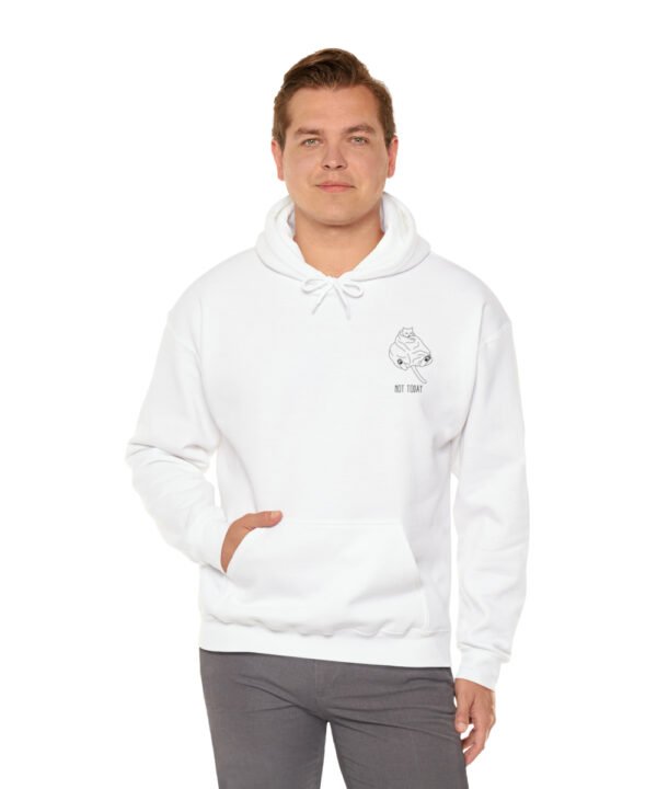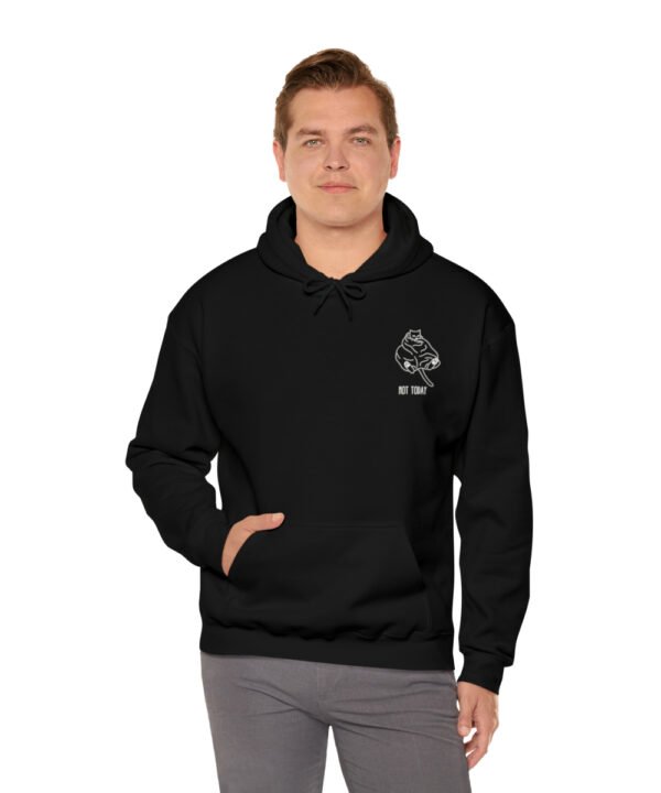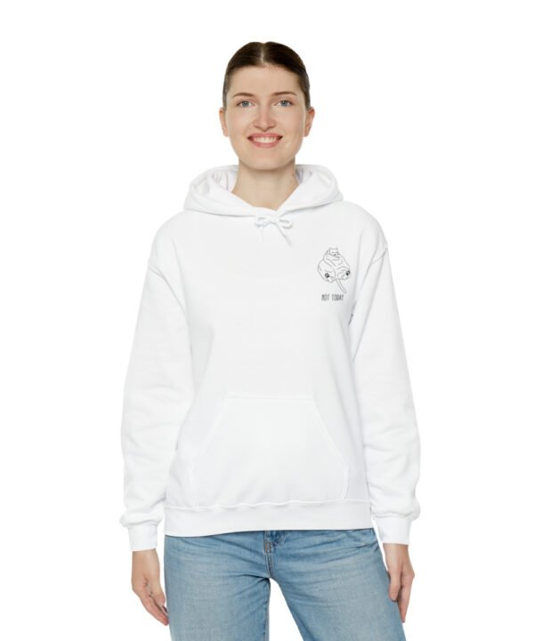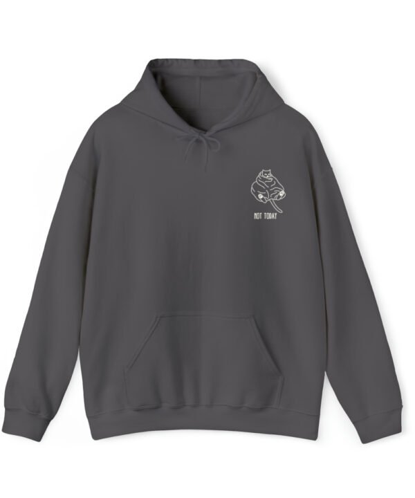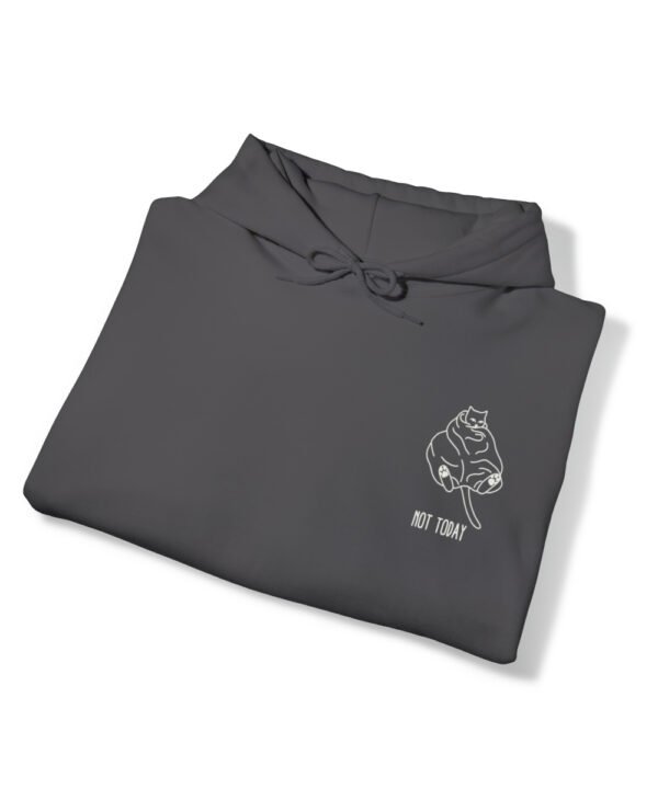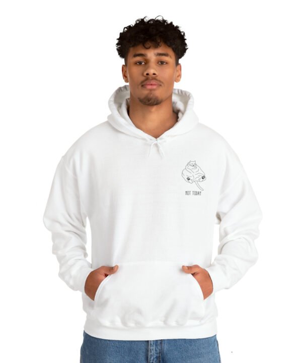 Embrace your inner feline attitude with the “Sassy Cat” Not Today Hoodie. This Unisex Heavy Blend™ Hooded Sweatshirt displays a cat licking its rear end, along with the text “Not Today”.