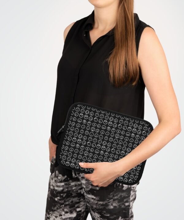 Add some personality to your laptop with a minimalist doodle emoji designes laptop sleeve from Smol Wear. This sleeve is designed with a doodle minimalist faces, making it stand out from the crowd. The black polyester back and water-resistant construction provide superior protection for your device, while the dual zipper enclosures keep it secure. Available in 10-inch and 13-inch sizes, you can choose the perfect fit for your laptop. Whether you’re working from home or on the go, this sleeve is perfect for anyone who wants to keep their laptop safe and stylish. Upgrade your laptop protection with a personalized feelings faces Designed Laptop Sleeve from Smol Wear today.