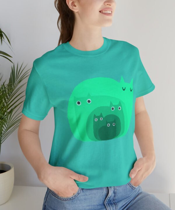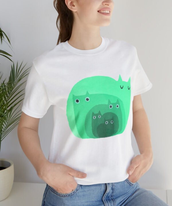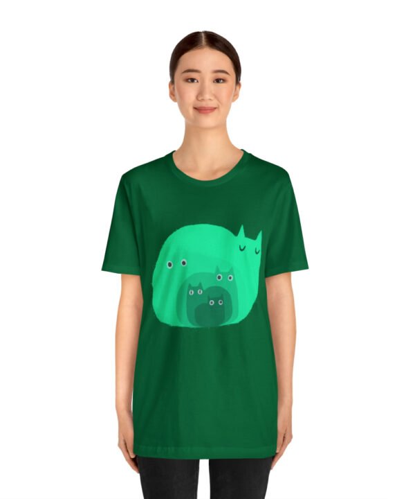 Get your “Green Small Cats Designed Unisex Jersey Short Sleeve Tee” from Smol Wear now and make a statement in style. Not only will you be supporting an independent artist and a small business, but you’ll also have a unique and high-quality t-shirt for your everyday wear. And if you’re looking for a gift for a cat lover, this shirt will be a great addition to a “Small Cats Collection”