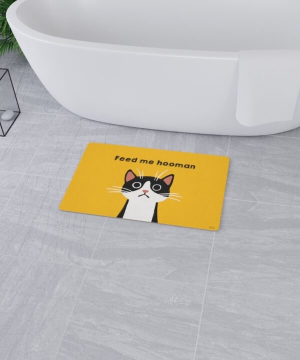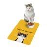 Keep your floors clean and mess-free with a yellow color pet food mat with “Feed Me Hooman” horizontal Design. Measuring 12×18 inches, this mat is the perfect size for all your pet feeding needs. Featuring a stylish cat design, this feeding mat is sure to become a conversation starter in any home. And with its non-slip back and thick construction, you can trust that this mat will stay in place and withstand even the messiest of eaters. So why wait? Get your hands on a yellow color pet food mat from Smol Wear today and start minimizing mess in style!