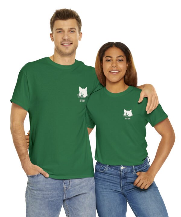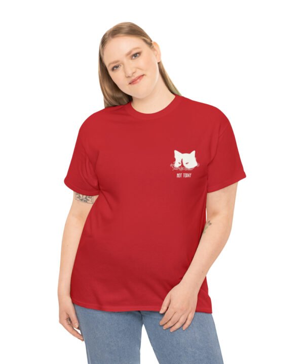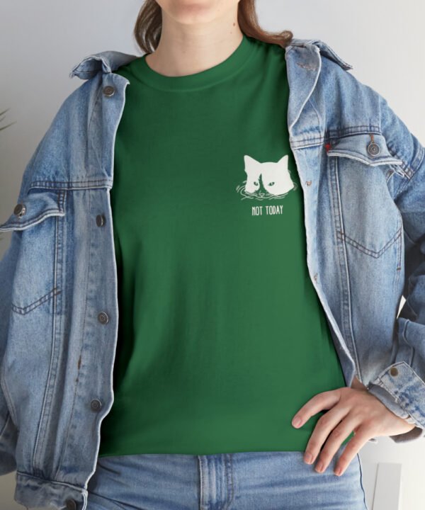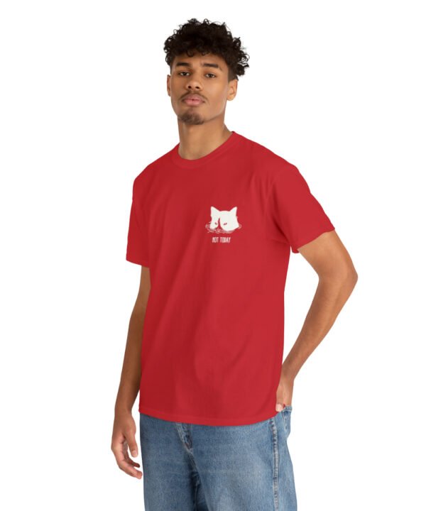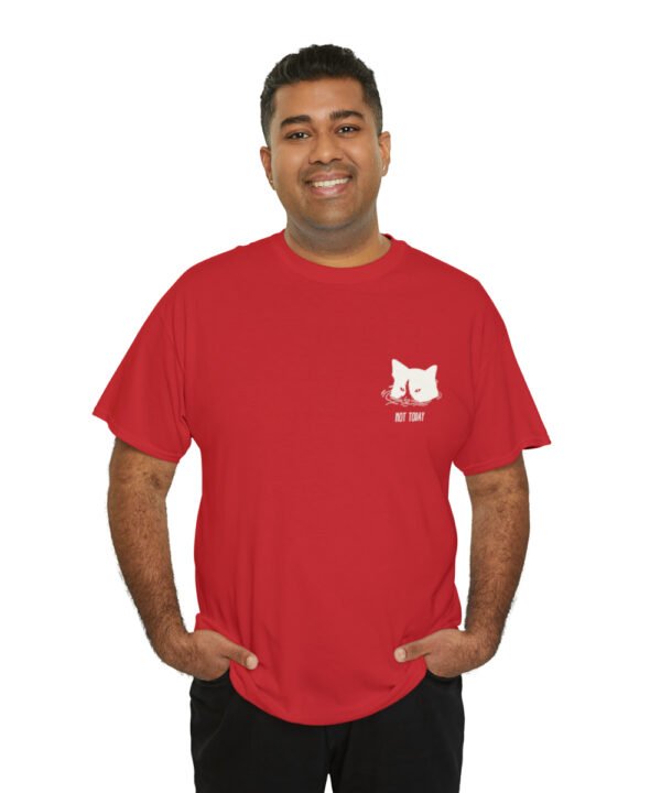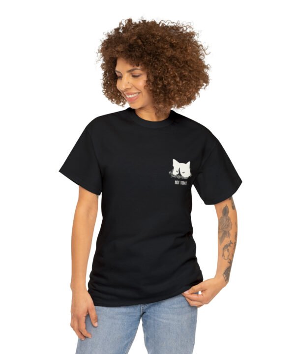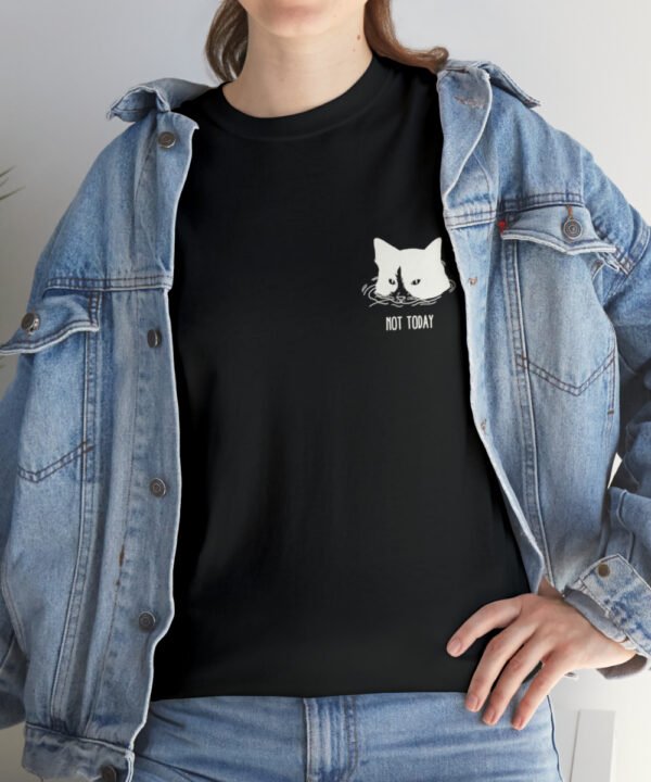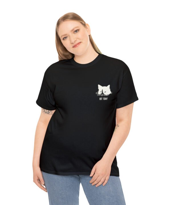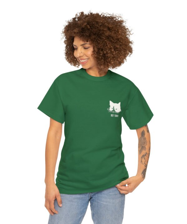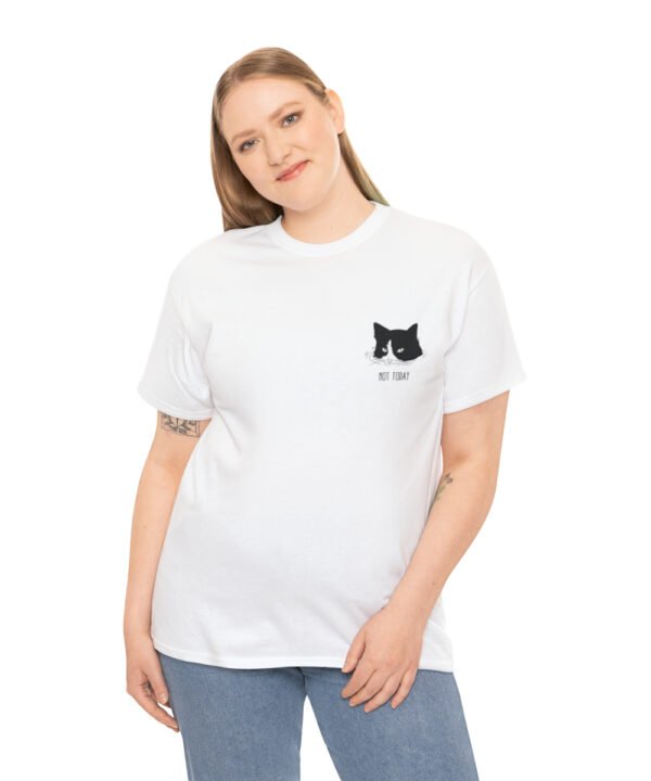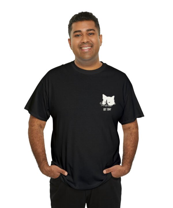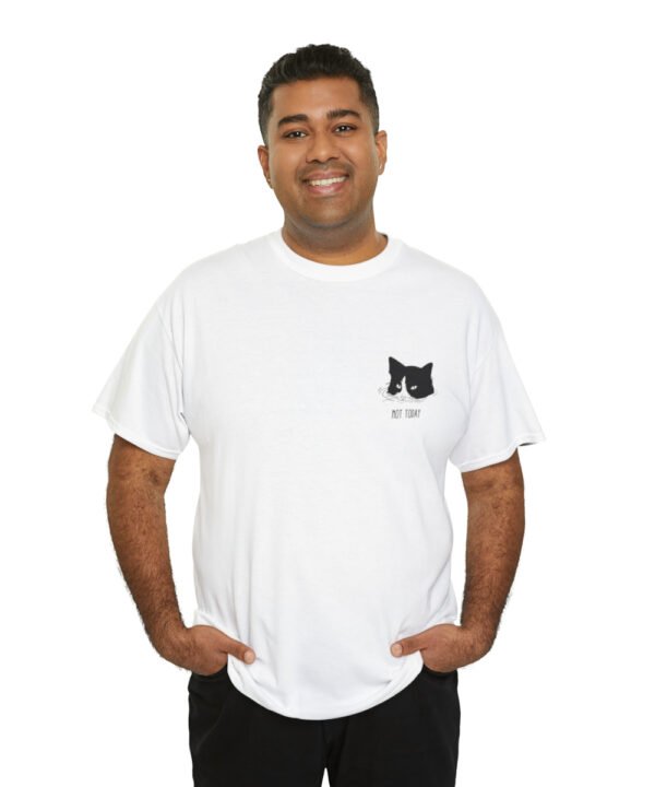 Dive into comfort and style with our Submerged Cat T-Shirt from the Not Today Collection. This unisex heavy cotton tee boasts a minimalist doodle of a cat partially submerged in water with a handwritten “Not Today” beneath it. The design, printed on a small area on the left chest area, gives a quirky touch to any outfit.
