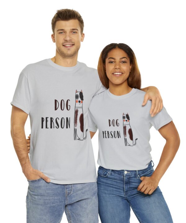 Show the world you’re a dedicated dog enthusiast with the “Proud Dog Lover” Dog Person T-Shirt. This unisex heavy cotton tee features a charming dog illustration alongside the text “Dog Person”, making it the perfect choice for canine devotees.