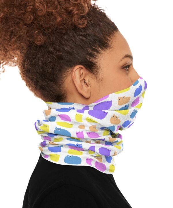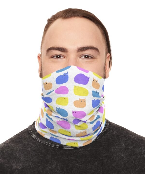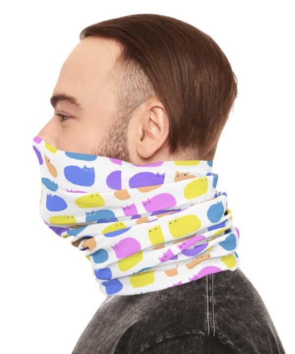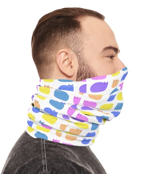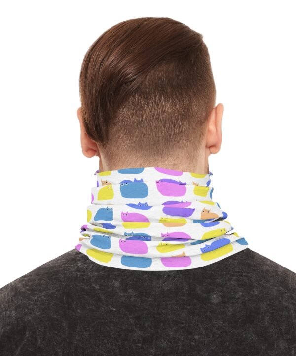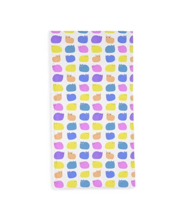Whether you’re out and about, running errands, or just looking for a stylish accessory, this versatile scarf is perfect for any occasion. The unique design features small, colorful cats in a playful and sweet design. The rainbow colors will add a pop of color to any outfit, and the cats will make you stand out from the crowd.
