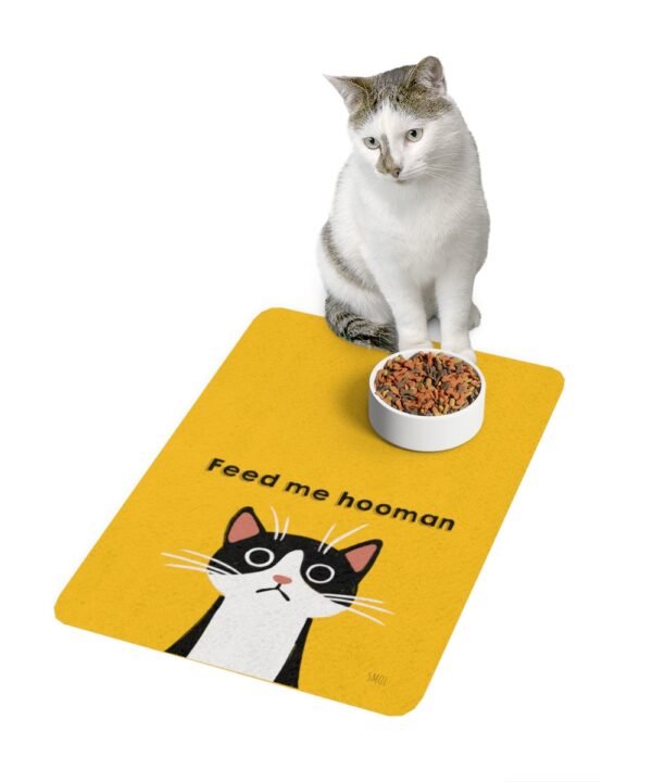 Upgrade your pet feeding routine with a yellow color pet food mat with Eating Point concept design feeding mat. Measuring 12×18 inches, this mat is the perfect size for all your pet feeding needs. Featuring a fun and playful cat design, this feeding mat is sure to bring a smile to your face every time you use it. And with its non-slip back and thick construction, you can trust that this mat will stay in place and withstand even the messiest of eaters. So why settle for a boring, generic feeding mat when you can have a custom one from Smol Wear? Get your hands on a yellow color pet food mat today and start minimizing mess in style!