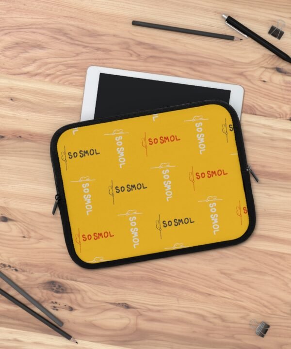 Keep your laptop safe and stylish with a Cat Designed Laptop Sleeve from Smol Wear. This personalized laptop sleeve is perfect for anyone who is always on the go, whether you’re working on the go or traveling. The black polyester back, water-resistant construction, and dual zipper enclosures provide superior protection for your laptop. The sleeve is designed with a playful cat illustration, making it stand out from the crowd. Available in 10-inch and 13-inch sizes, you can choose the perfect fit for your laptop. The personalized design ensures that you’ll never have to worry about grabbing the wrong sleeve again. So why settle for a boring, generic laptop sleeve when you can have a personalized one from Smol Wear? Get your hands on a Cat Designed Laptop Sleeve today and add some personality to your laptop!